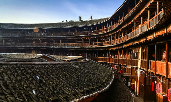 12:00 午餐后游览,中国邮电部发行了一套“中国民居”邮票“世界文化遗产【承启楼】被称为“土楼王”它的“高四层,楼四圈,上上下下四百间;圆中圆,圈套圈,历经沧桑三百年”环环相套。参观土楼之王--承启楼,不倒楼--五云楼 ,博士楼--侨福楼。游览结束后乘车返回厦门。